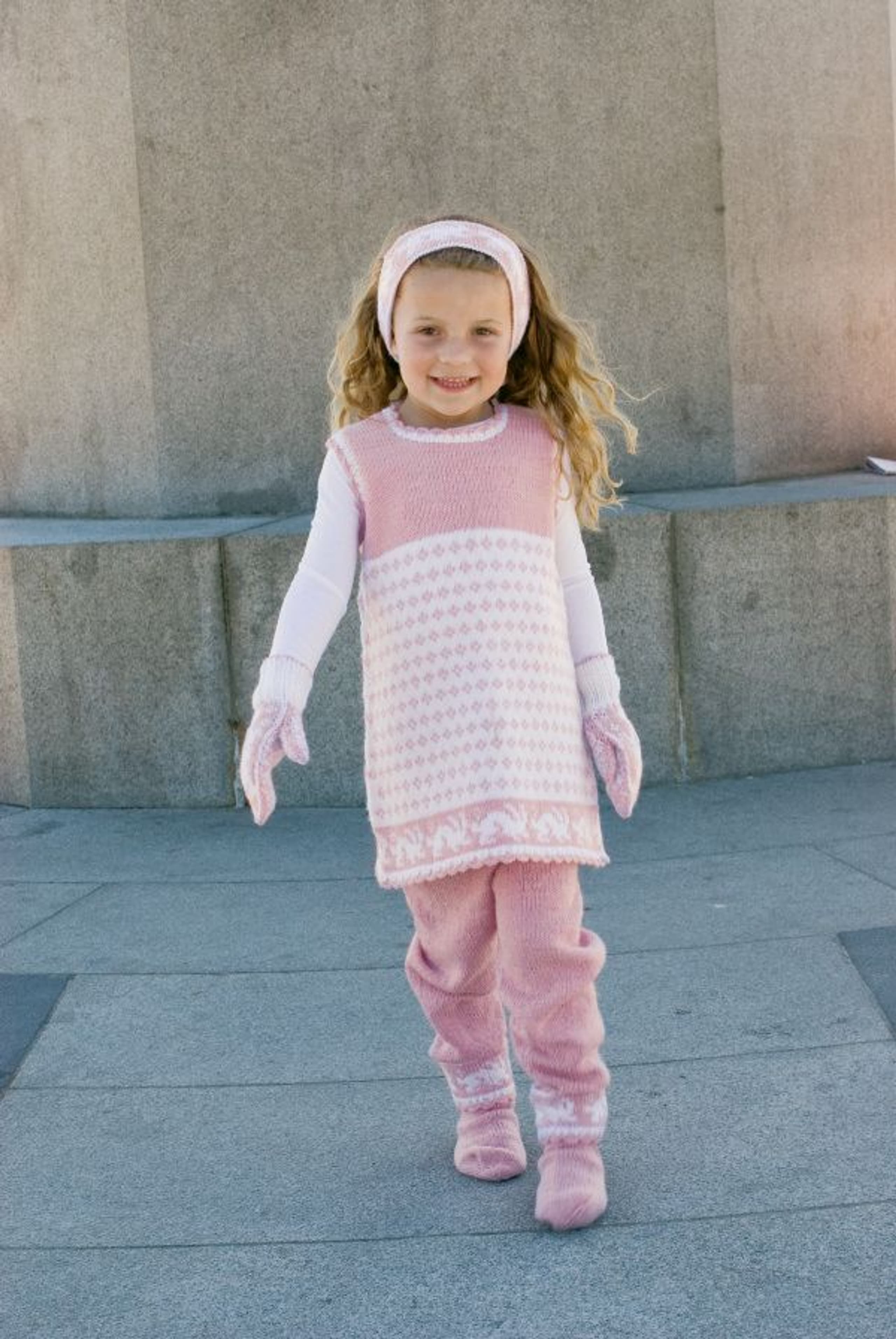 Tunika med kaniner, bukse, votter, ørevarmere og pyntesokker