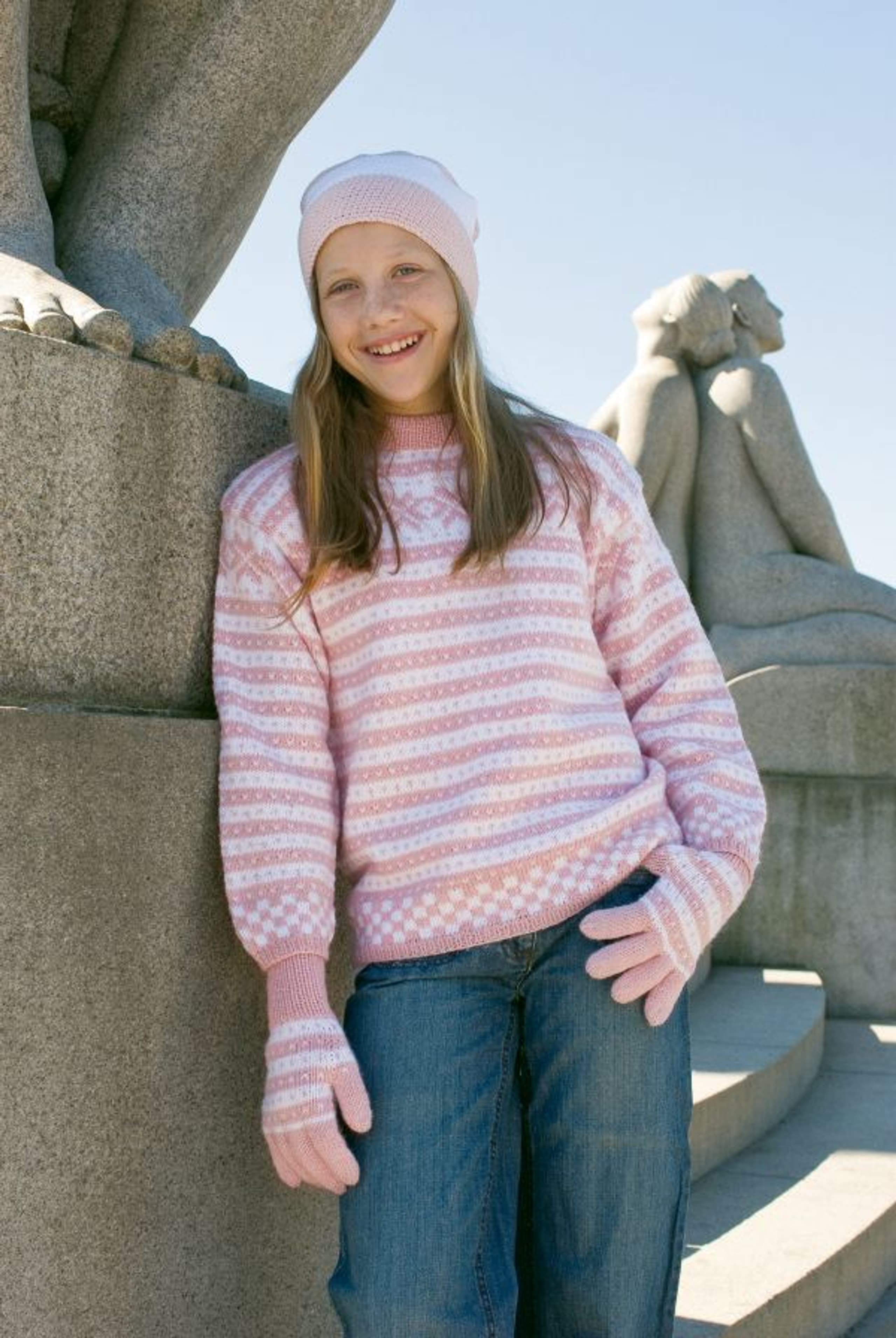 Fana genser, vanter og heklet lue