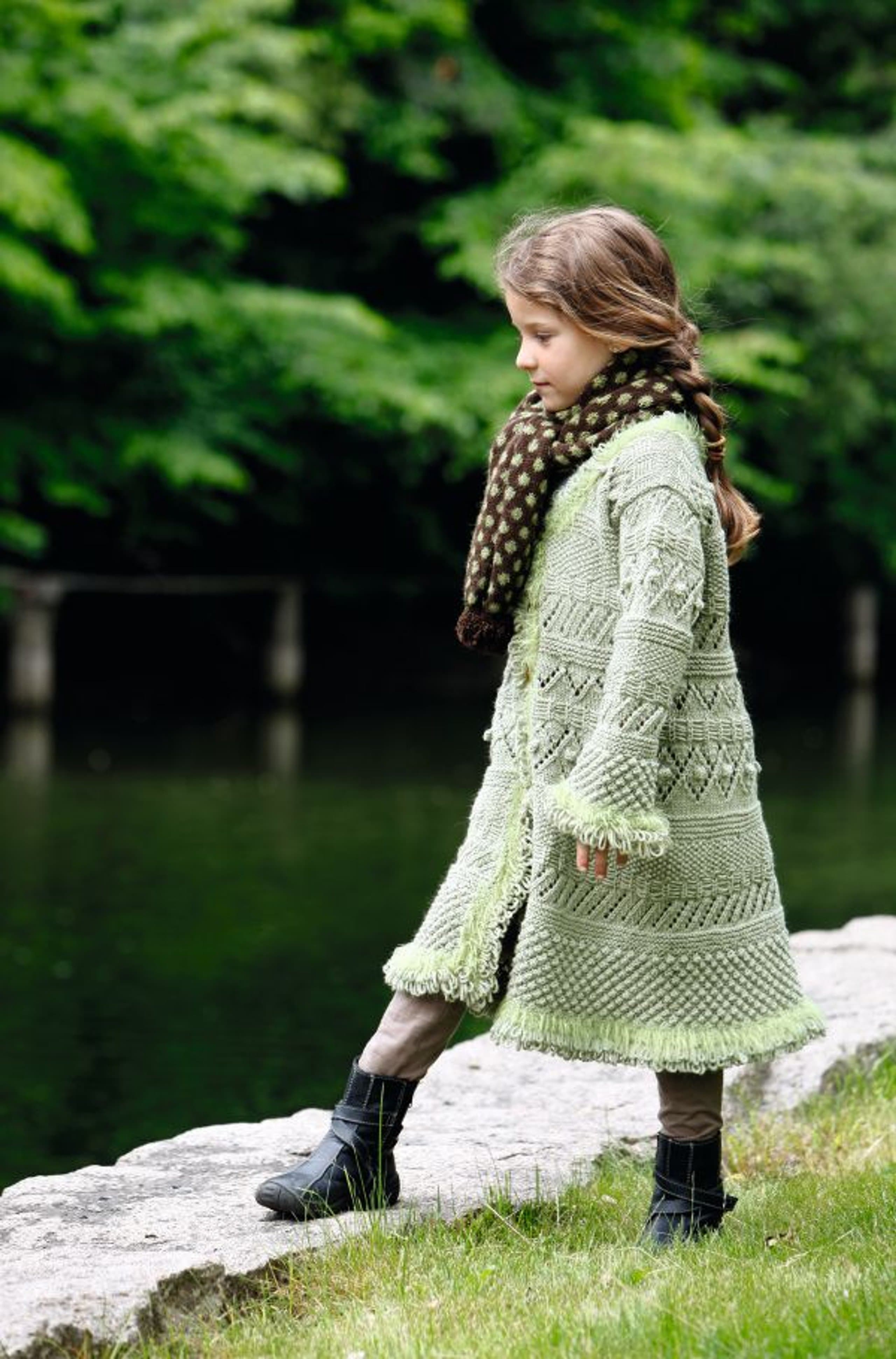 Genser med små blomsterborder og lue