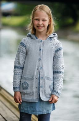 Genser med små blomsterborder og lue