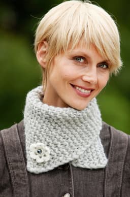 Skjerf og lue med fletter.