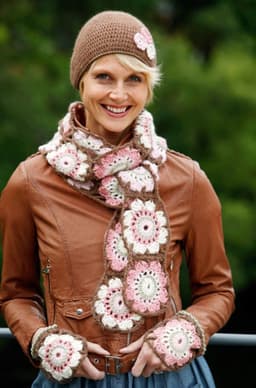 Heklet skjerf,pulsvarmere og lue