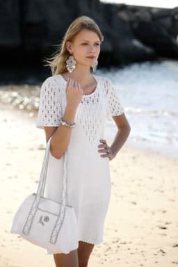 Kjole i hullmønster med korte- eller trompet-ermer