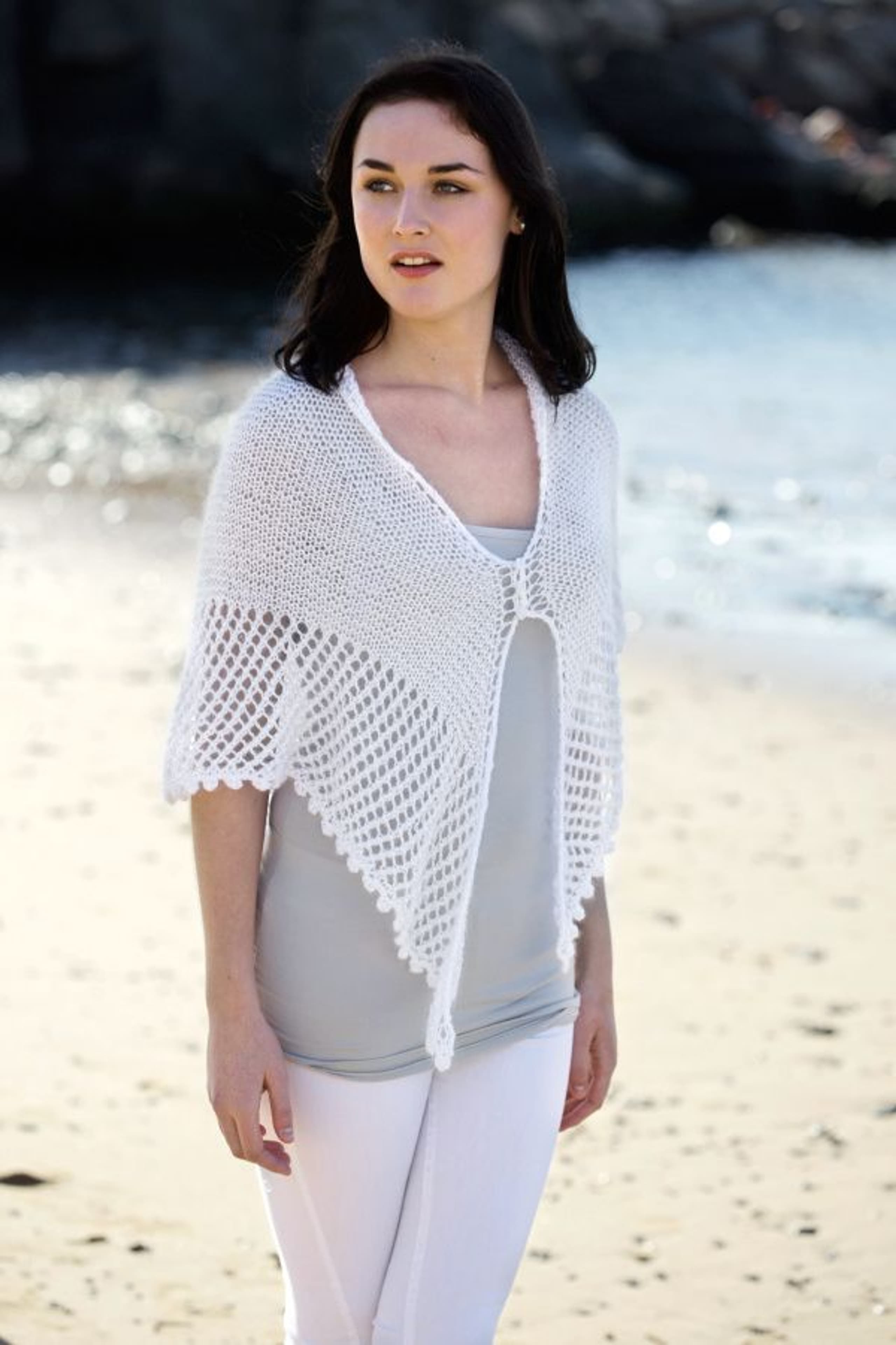 Strikket sjal med heklet kant