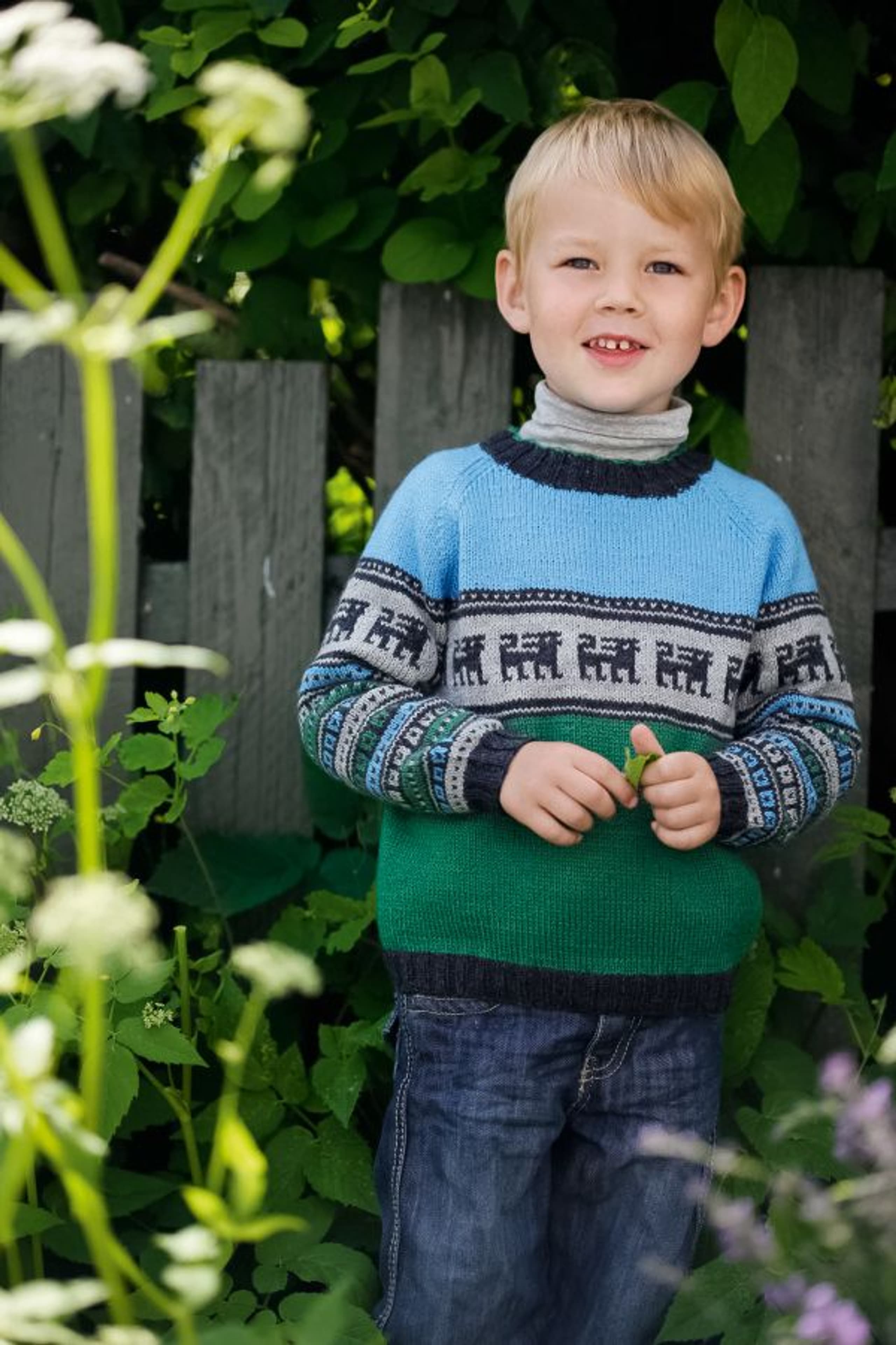 Genser med rundfelling og lue