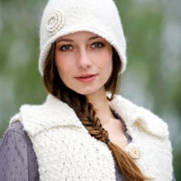 Lue og votter med fletter