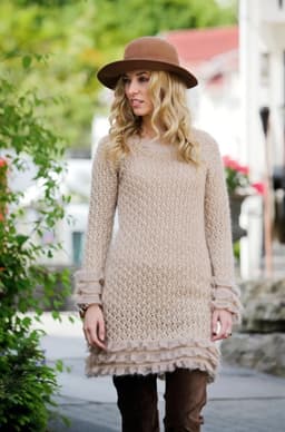 Pt Pandora og Plum eller Baby Panda og Plum. Kjolen kan strikkes i to lengder. Mod A er den lengste.
