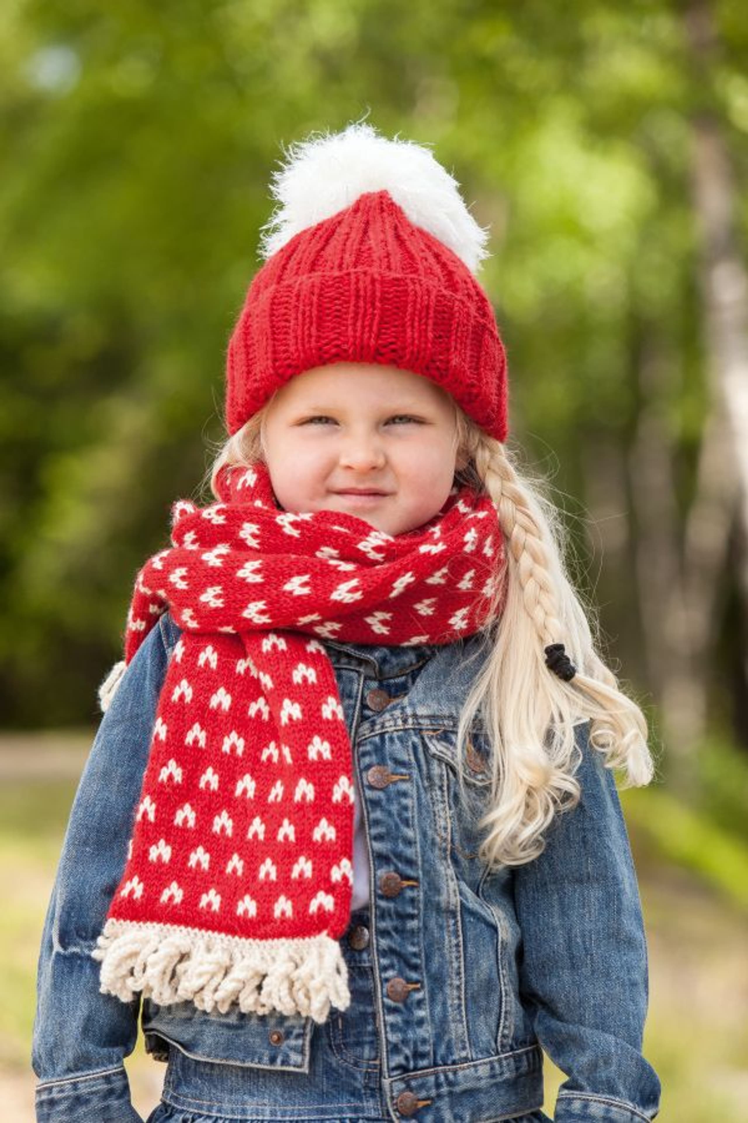 Genser med rundfelling, bukse og lue