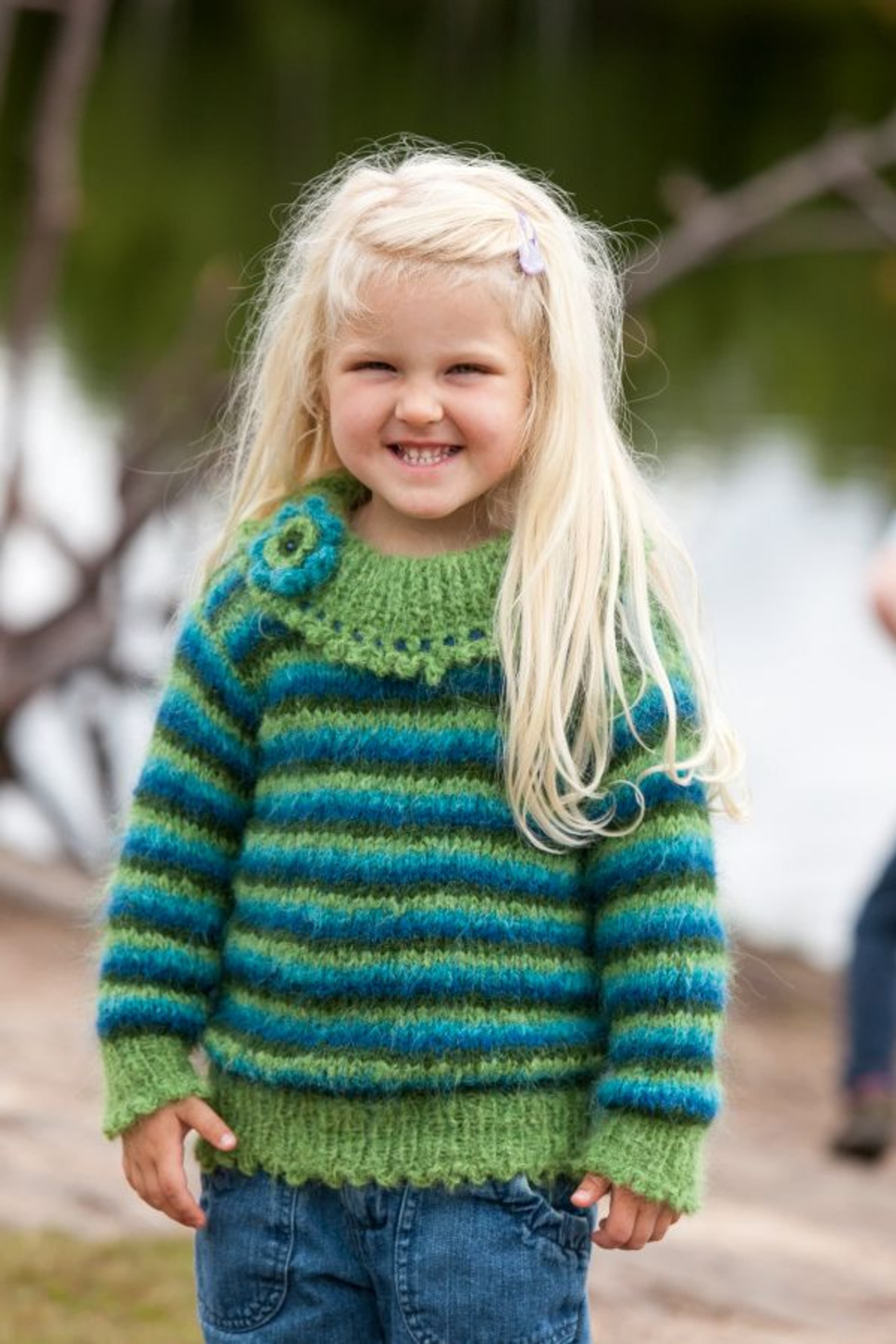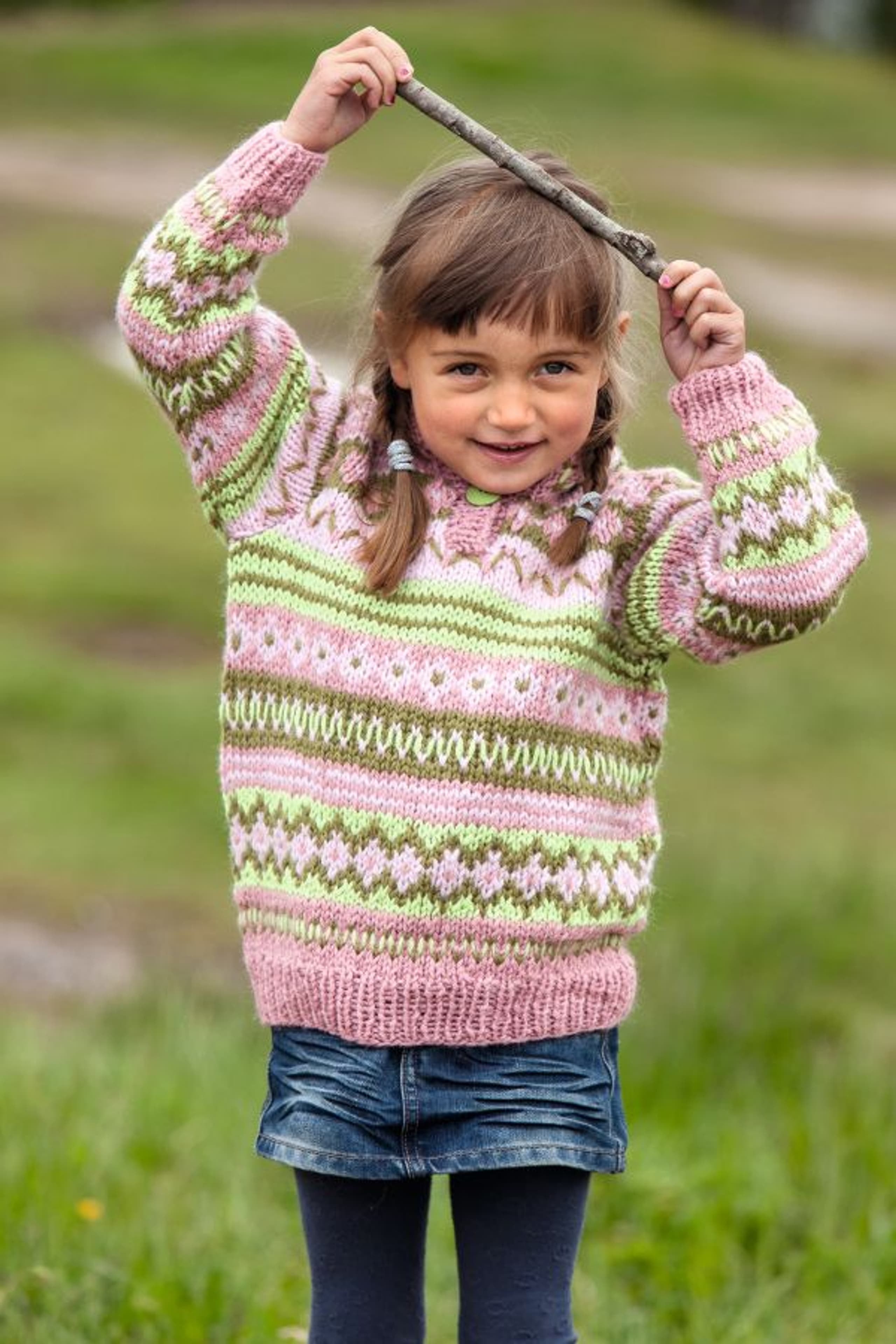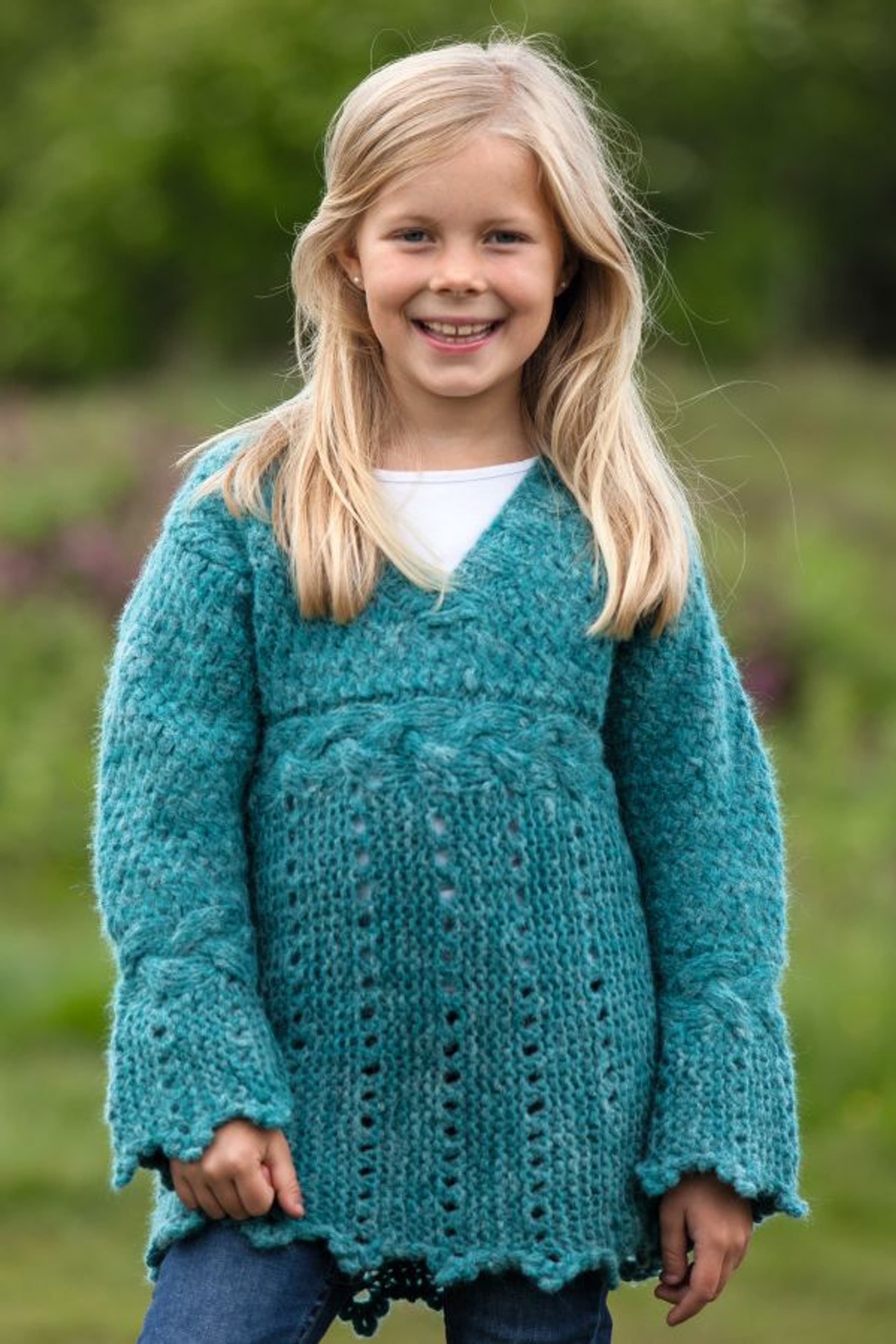 Genser med fletter og sjalskrage