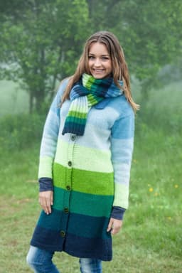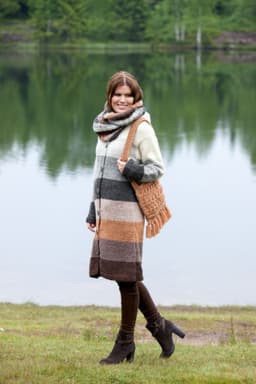 Rauma Vams Pt3. Hals (Til kåpe med hette): 50 g av hver farge eller rester fra kåpen. Skjerf (Til kåpe med krave): 50 g av hver farge eller rester fra kåpen.