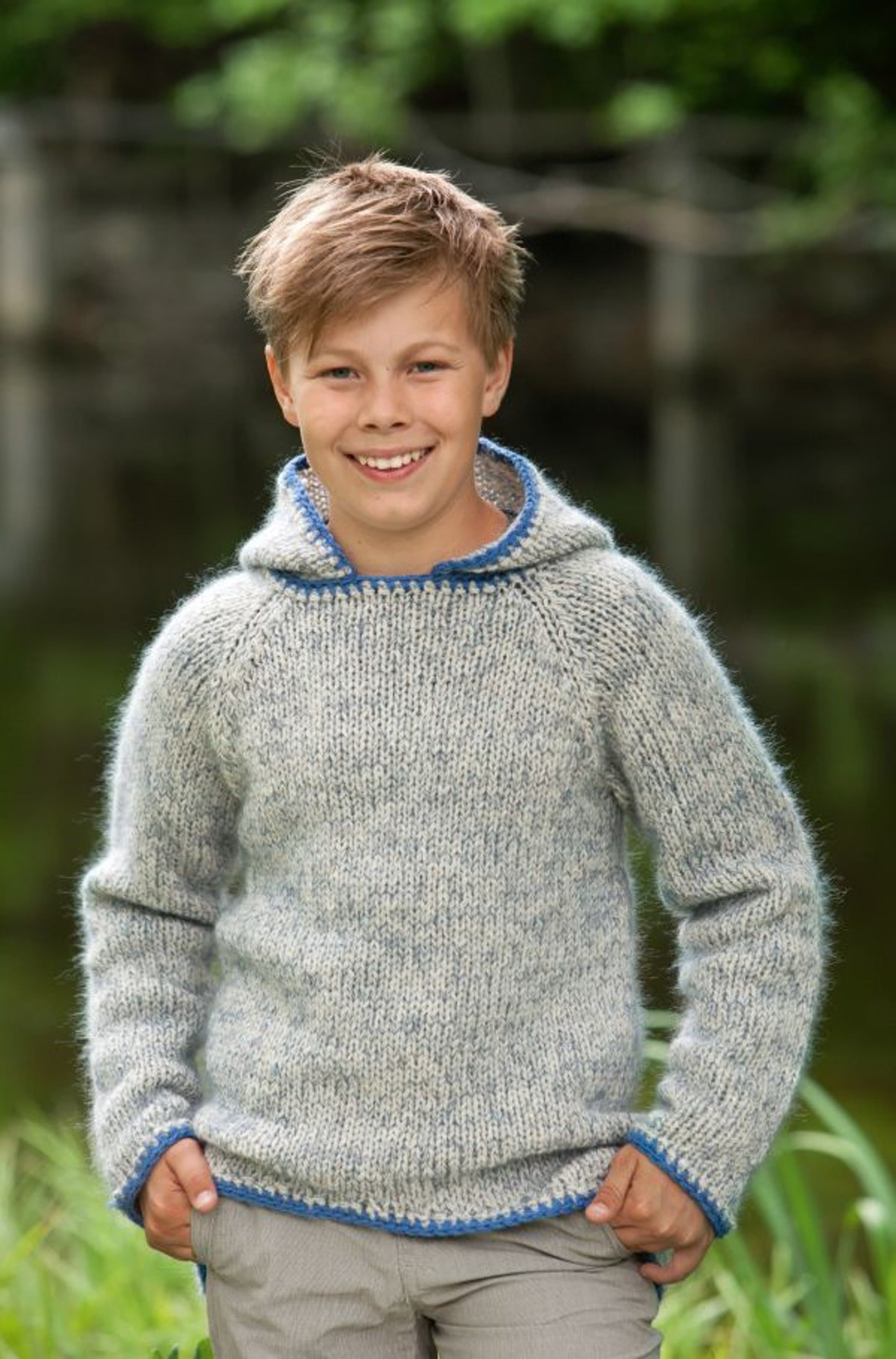 Genser med raglan og hette
