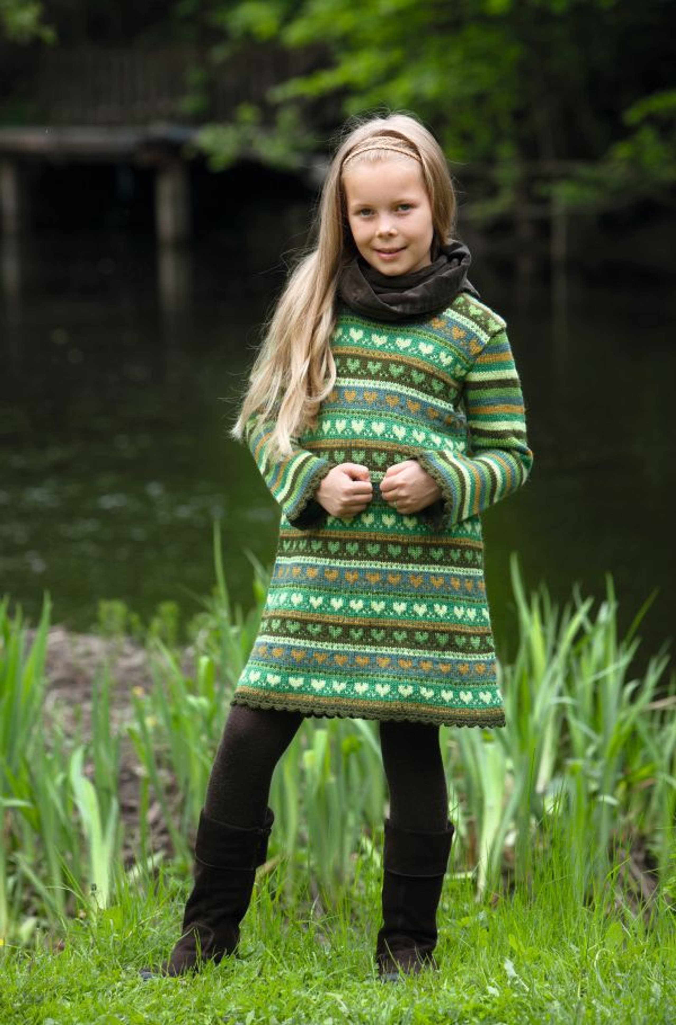 Kjole med hjertemønster og striper