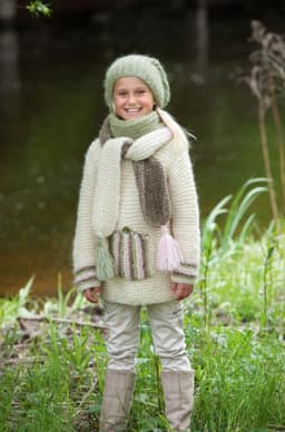 Iris Alpakka og Inca Alpakka. Til skjerf, løs hals og lue: Bruk restegarnet og suppler ved behov.