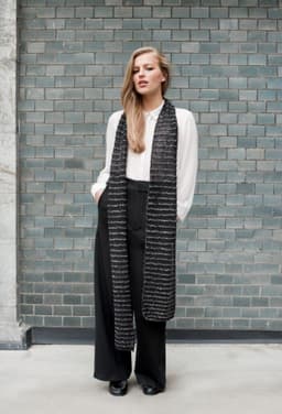 Skjerf strikket i Pavo og dobbel plum, eller i Alpaca Silk og Pavo.