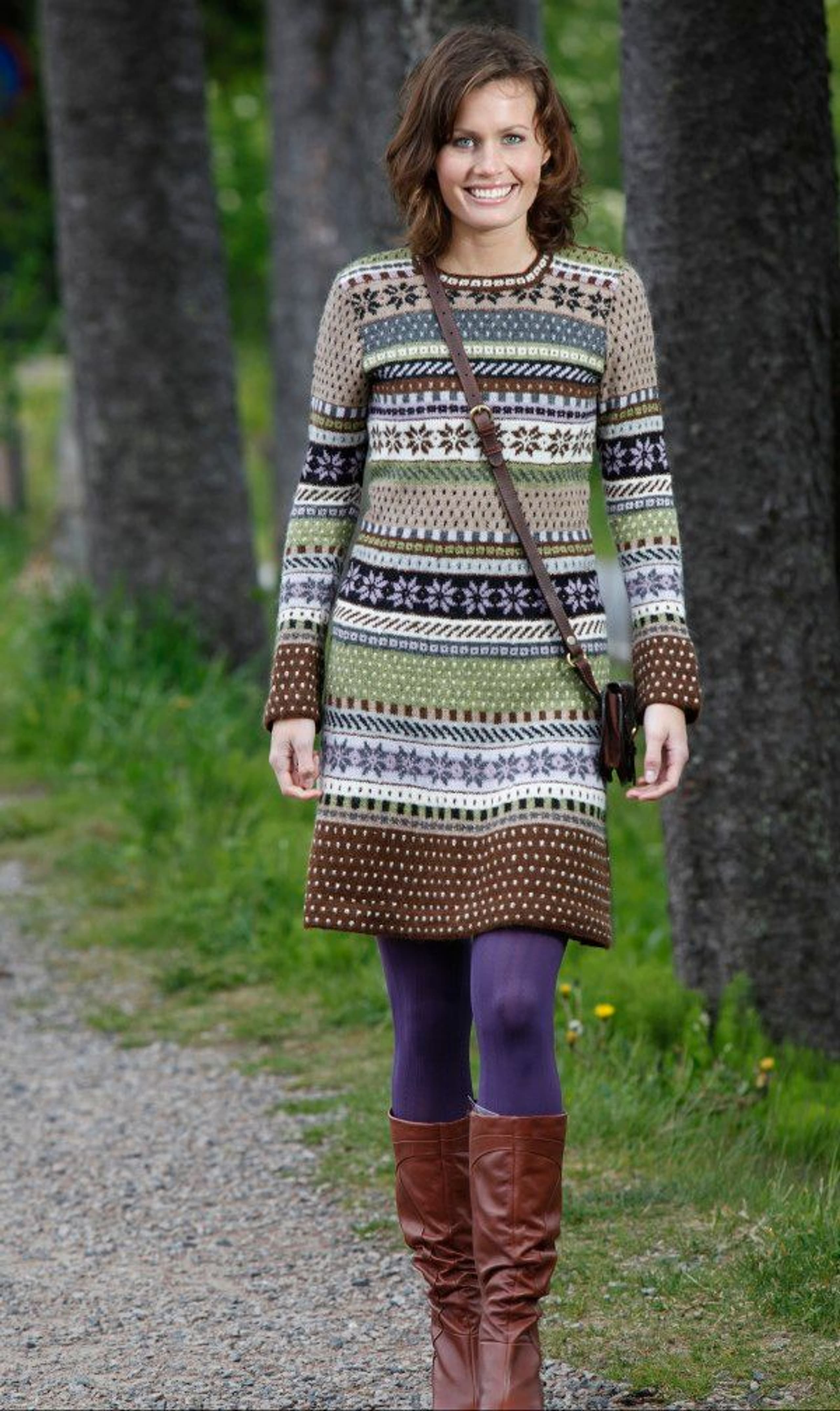 Tunika med border eller striper og lange eller 3/4 lange ermer