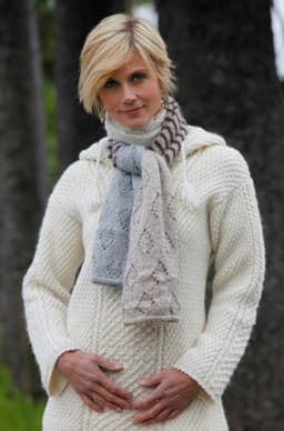 Heklet skjerf, strikket lue og pulsvanter