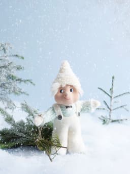 Fagstrikknisse. Nissegutt uten klær, høyden på nissen er ca 30 cm høy. Gutten på bildet har klær. I heftet 276 er det oppskrifter til klær du kan strikke i forskjellige design til nissejente, nissegutt, nissekone og nissegubbe.